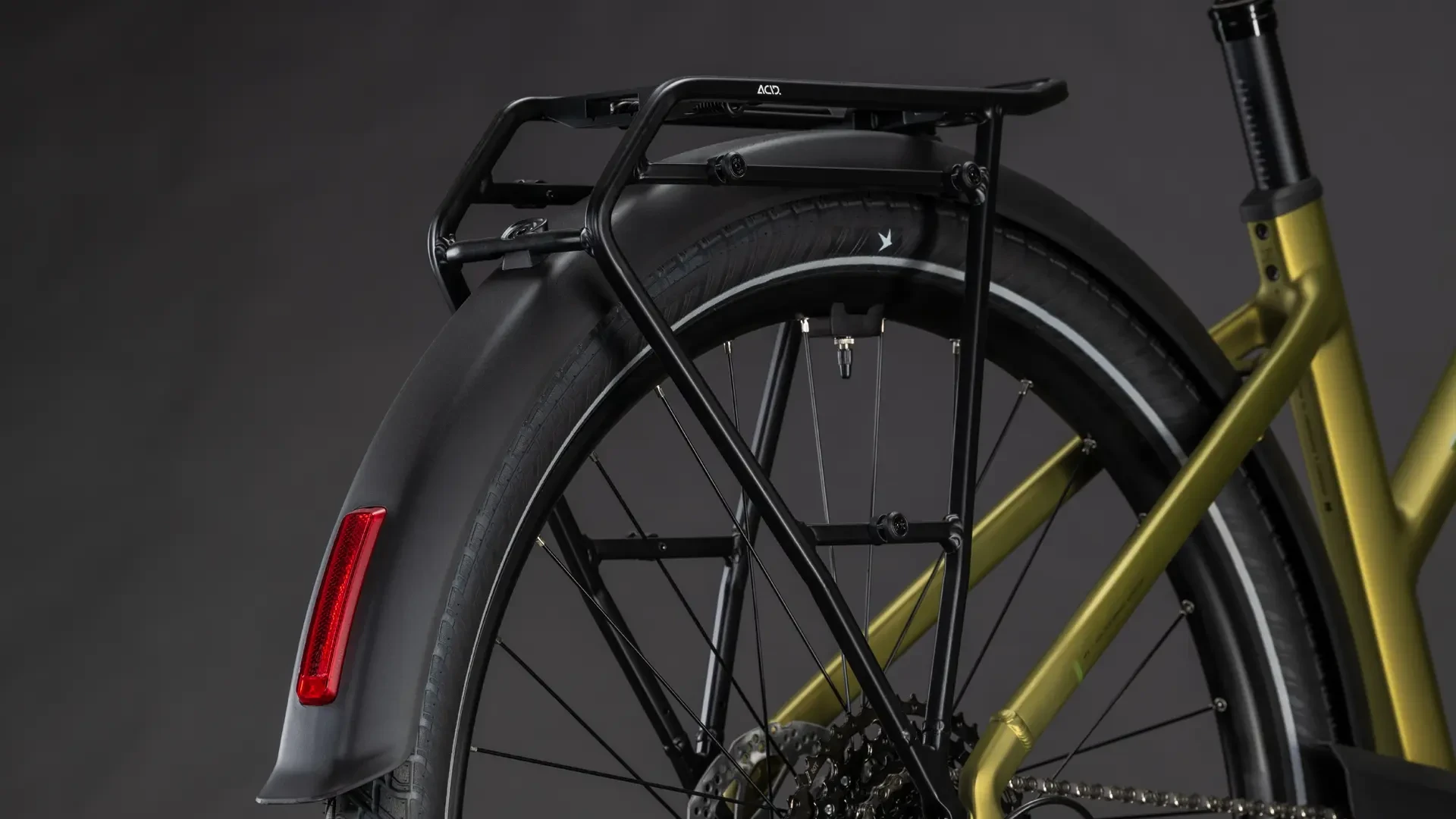 Auf den ersten Blick sieht der Touring Hybrid Rahmen vielleicht unspektakulär aus, doch wer genau schaut, wird von seiner Ästhetik und Detailverliebtheit und damit dem tollen Handling begeistert sein. Zum einen ist da der ebenso stabile wie stylishe integrierte Gepäckträger 2.0, auf dem alles Platz findet, was auf Tour mit muss. Auch der leistungsstarke Bosch Performance PX Motor fügt sich samt 800 Wh PowerTube Akku so formschön ins Design ein, dass er kaum auffällt. Was aber natürlich auffällt, ist der tolle Support im Vorwärts! Für ein komfortables und zugleich kontrolliertes Fahrgefühl, selbst auf holprigen Strecken, sind unsere Efficient Comfort Geometry und die Federgabel mit ihren 100 mm Federweg zuständig. Was noch? Ein ACID Kettenschutz, ein Seitenständer, Schutzbleche und Lichter.