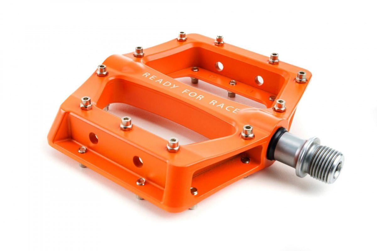 Die leichten Flat-Pedale sind aus Aluminium hergestellt und werden mit einer CrMo-Achse verbaut. Die Pedale werden mit hochwertigen Lagern gelagert. Die Anti-Rutsch-Pins sind austauschbar und bieten besten Halt am Fahrrad.