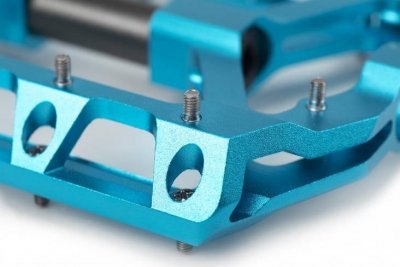 Hochwertig CNC-gefrästes Flat-Pedal aus Aluminium mit einem aggressiv flachen Design. Die austauschbaren Pins und die große, griffige Standfläche geben besten Grip und Sicherheit. Mit CrMo-Achse für eine lange Lebensdauer.